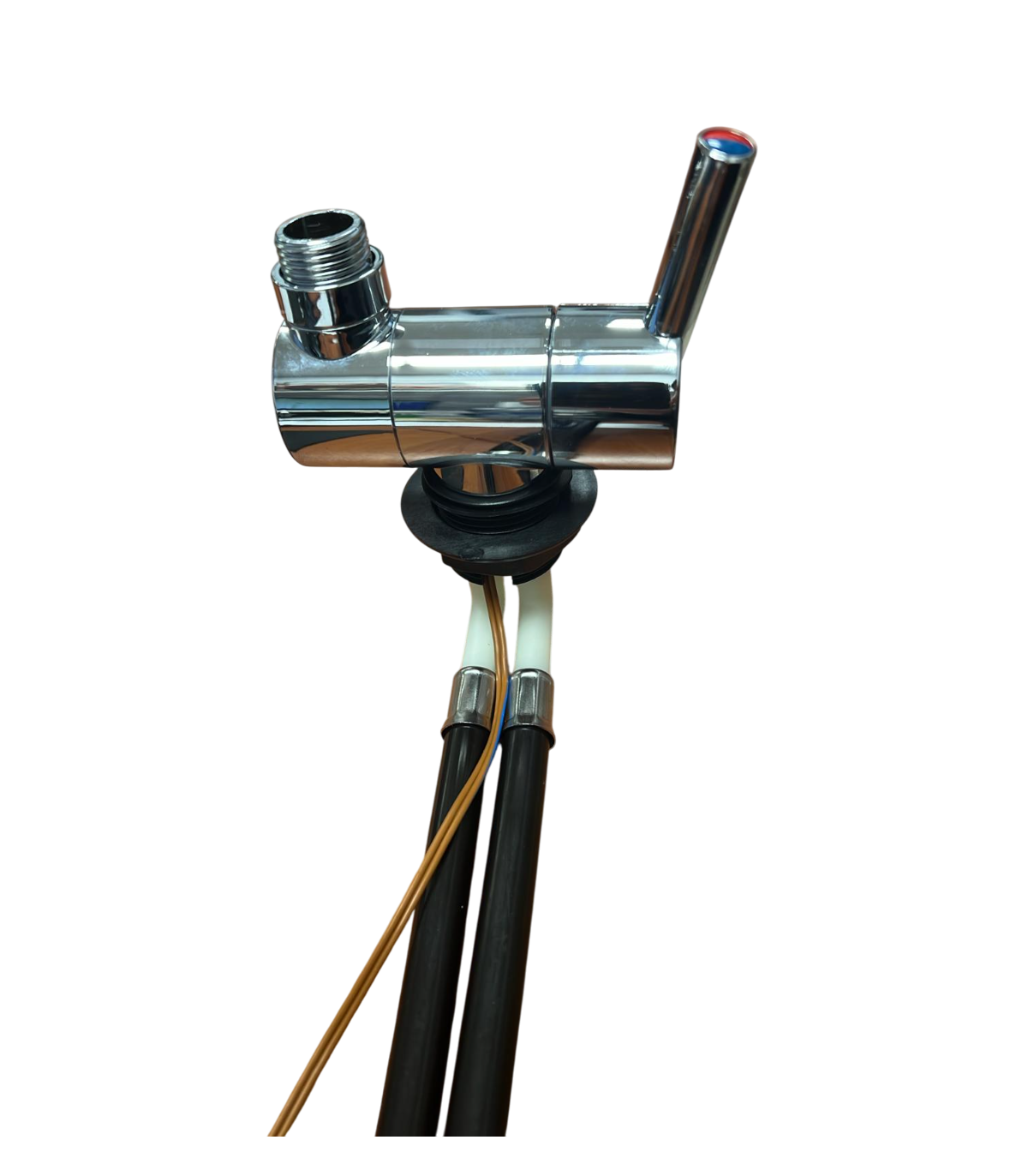 Con certificación IP67, garantiza una protección óptima contra la humedad y el agua, lo que lo convierte en una solución fiable incluso en entornos de alta exposición. El mezclador Trend A cuenta con conexiones de entrada de 12 mm JG (John Guest), lo que facilita una instalación rápida y segura sin necesidad de herramientas especializadas. Además, incorpora un racor de conexión para salida de agua de 1/2", ideal para integrar un flexo de ducha o una manguera de manera práctica.